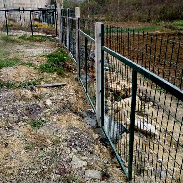 坪、動(dòng)物園、池湖、道路、及住宅區(qū)的隔離與防護(hù)。鐵路防護(hù)柵欄選擇低碳鋼絲,編焊而成;網(wǎng)格結(jié)構(gòu)簡(jiǎn)練、便于運(yùn)輸、安裝不受地形起伏