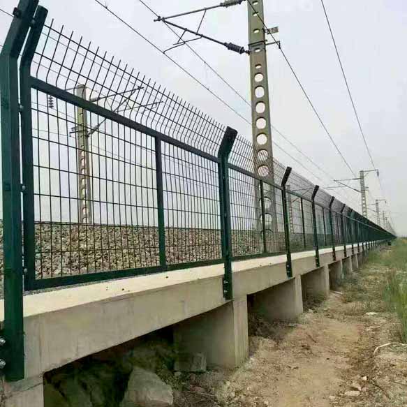 8001型鐵路隔離柵 鐵路護(hù)欄網(wǎng)用于鐵路兩側(cè)的隔離防護(hù)設(shè)施起隔離和防護(hù)的作用的護(hù)欄網(wǎng)產(chǎn)品,它被廣泛應(yīng)用于高速公路、鐵路、垃圾填
