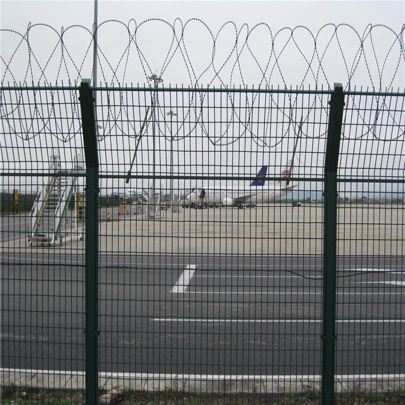 機場圍界隔離柵又稱作機場隔離柵“Y型安全防御護網(wǎng)”,是由V型支架立柱,加強型焊接片網(wǎng),安全防盜連接件和熱鍍鋅刀片刺網(wǎng)組成強度