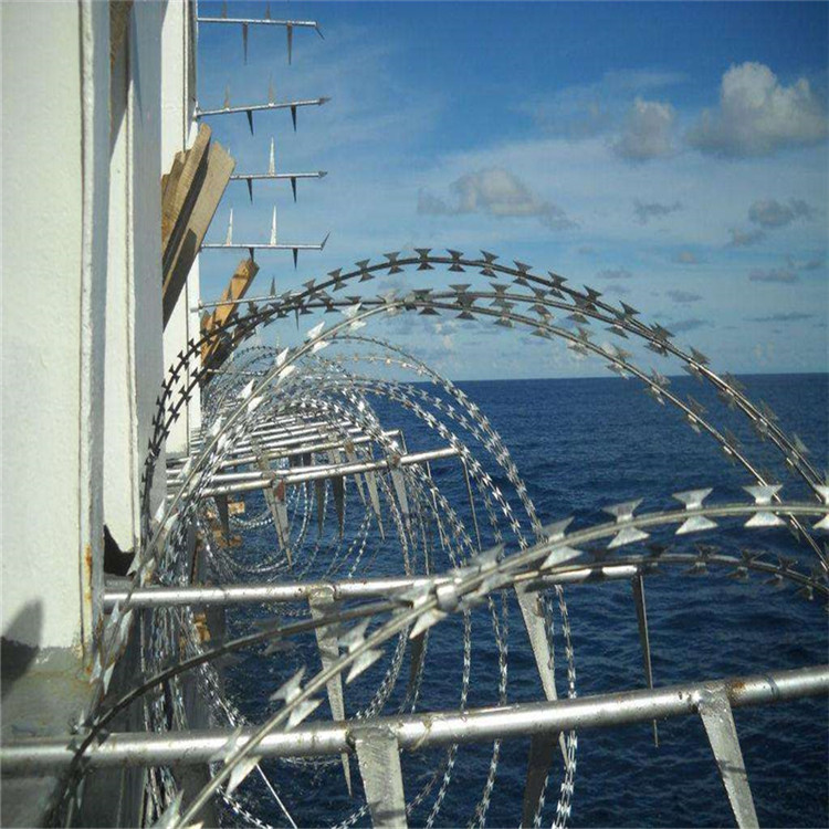 邊境鐵絲網(wǎng)BTO-22屬于一種新的應(yīng)用方式,它是將單圈式刀片刺網(wǎng)平壓成板狀,或?qū)杉稳Υ叹W(wǎng)壓平后交叉相錯使用,外表美觀而且實用,鐵絲網(wǎng)在邊界線可與直線式刀片刺網(wǎng)搭配使用,構(gòu)成下直線上平板的防護墻,或僅用平板式刺網(wǎng)構(gòu)成防護墻。