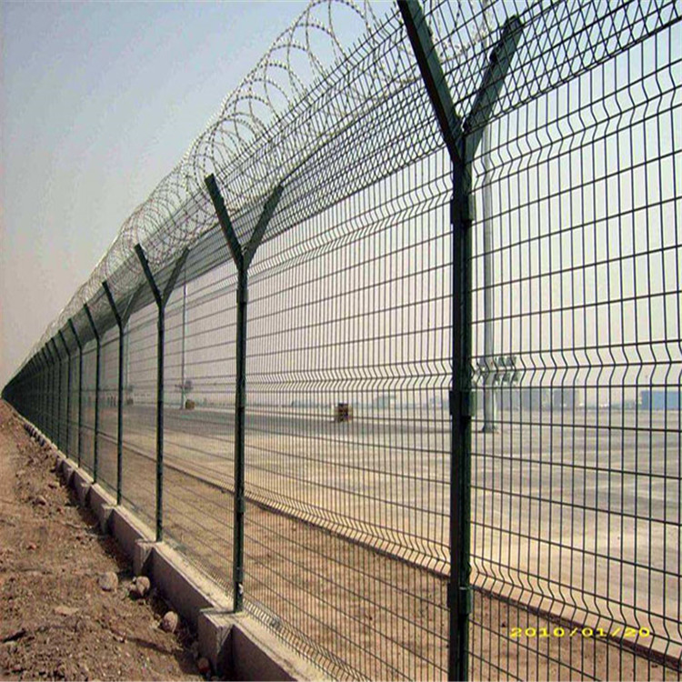 機場護欄網(wǎng)因為具有美觀、實用、方便運輸和安裝等特點,目前被社會普遍應(yīng)用。而且如果能在機場護欄網(wǎng)頂部加上刀片刺絲或者刀片刺繩后又進一步的增強了安全防護性能。普通的機場護欄網(wǎng)大多都是采用電鍍、熱鍍、噴塑、浸塑等防腐形式,此方法具有很好的防老化、防曬等特點。