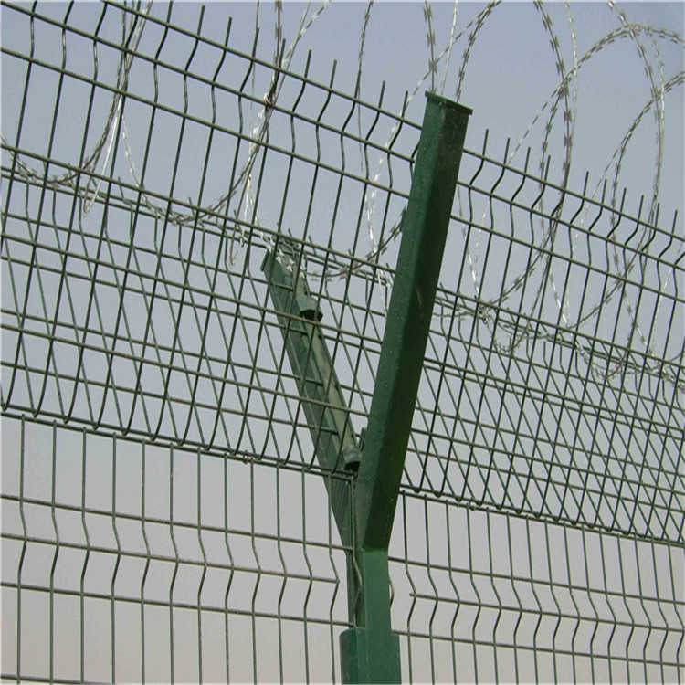 現(xiàn)在人們選擇飛機(jī)出行的方式越來(lái)越多,當(dāng)看到這種高大護(hù)欄網(wǎng)時(shí)不知是如何生產(chǎn)的,這種護(hù)欄網(wǎng)是采用大直徑高強(qiáng)度合金鋼絲制作。機(jī)場(chǎng)護(hù)欄網(wǎng)主要是采用高強(qiáng)度的刀片刺網(wǎng)與普通防護(hù)網(wǎng)的結(jié)合,由V型支架立拄,加強(qiáng)型焊接片網(wǎng),安全防盜連接件組成。