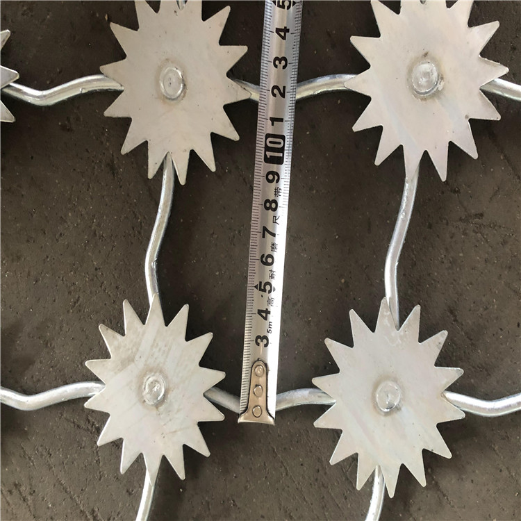 寸: 120mm*110mm(高*寬) ,網(wǎng)絲直徑8mm ,采用S195線材高壓焊接,每一個(gè)焊點(diǎn)附焊梅花刺-一個(gè)。