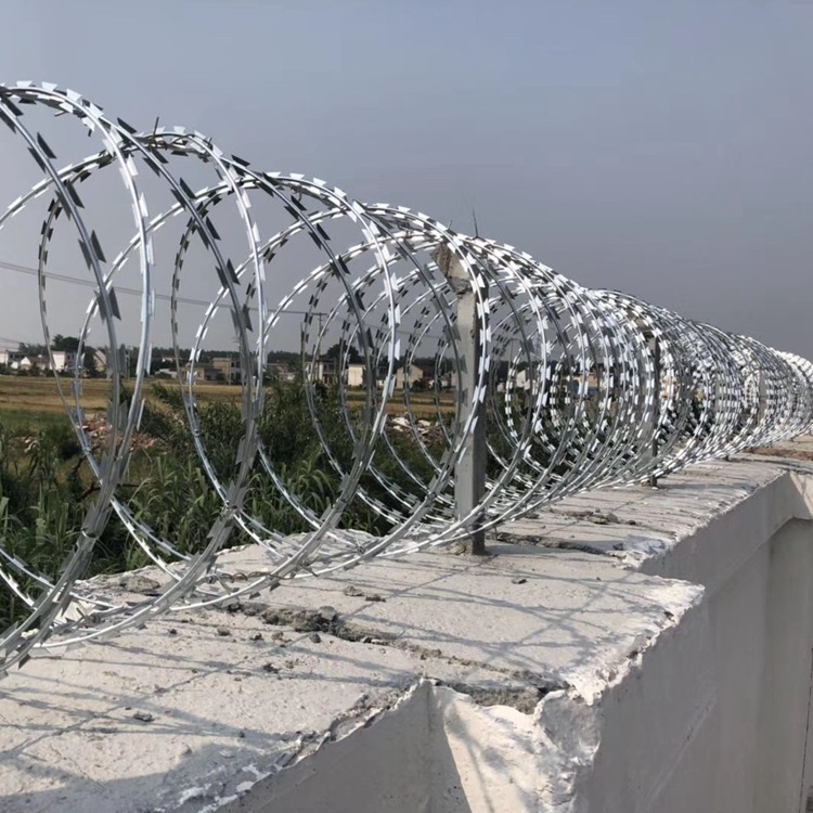 較后,刺絲滾籠的下緣距離鋼筋混凝土防護欄上緣的垂直距離應(yīng)為5厘米。 刺絲滾籠不僅可以用在高鐵的防護上,對于倉庫、監(jiān)獄和軍事區(qū)等重要的封鎖場所也有重要的防護作用。對于社會的發(fā)展有著一定的重要性。