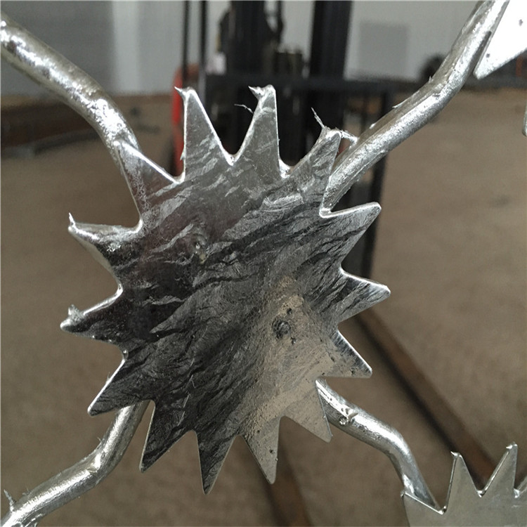 梅花刺防沖隔離網(wǎng)為單層梅花刺片網(wǎng),直徑不小于7.5cm要根據(jù)監(jiān)獄地形的結(jié)構(gòu)特點(diǎn)并現(xiàn)場(chǎng)實(shí)際檢測(cè)后給予設(shè)計(jì)方案。監(jiān)獄護(hù)欄網(wǎng)設(shè)計(jì)方案要符合國(guó)家關(guān)于建筑類(lèi)行業(yè)的有關(guān)規(guī)范標(biāo)準(zhǔn),確保網(wǎng)墻的牢固性和抗風(fēng)能力。網(wǎng)墻上蛇腹型刀刺網(wǎng)與V型托網(wǎng)之間用適量固定卡子或用2-3條直徑3.0mm不銹鋼絲加固,鋼絲穿過(guò)V型托(預(yù)留孔)拉直固定。應(yīng)充分考慮采取必要措施確保鋼網(wǎng)墻設(shè)備的避雷效果。避雷針:500mm*10mm。避雷導(dǎo)線:4㎡銅芯線。鋼網(wǎng)墻是金屬網(wǎng)墻,焊接及連接點(diǎn)效果優(yōu),本身形成了一個(gè)有利的避雷明網(wǎng),十分符合防雷的需求。如監(jiān)墻有避雷裝置,將網(wǎng)墻和原避雷引線連接即可。如沒(méi)有,則需重新加裝避雷設(shè)施。為確保安全,避雷的防護(hù)效果應(yīng)通過(guò)當(dāng)?shù)氐臍庀蟛块T(mén)的監(jiān)測(cè)為佳。
