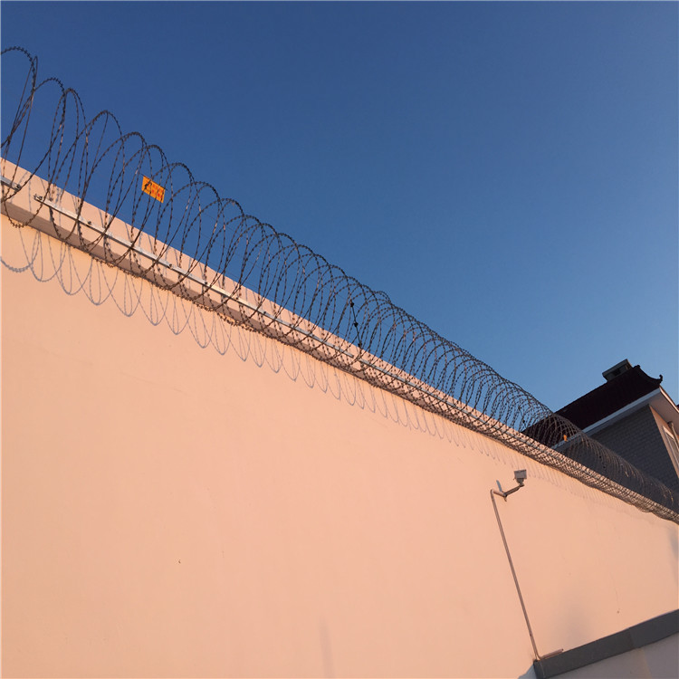 斧型刺刀圈的產(chǎn)品知識是一種新型防護(hù)網(wǎng),由銳利尖角刀片和芯線組成,刀刺、刀型整齊、刀片銳利、排列均勻致密、連接牢固。強度和安全防御性級別很高.鋼筋網(wǎng)圍界刺鋼絲采用斧型刺刀圈,刺刀圈內(nèi)芯為直徑2.5mm的冷拔低碳鋼絲并經(jīng)防腐處理,表面熱鍍鋅。安裝刺刀圈與頂部V形延伸臂用不銹鋼卡子連接,沿長度方向每隔500mm設(shè)4個卡子連接.
