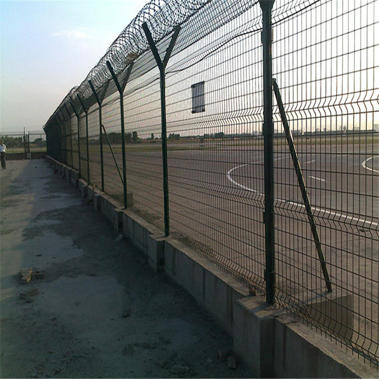 機場鋼絲網(wǎng)圍界就是應(yīng)用干機場跑道兩側(cè)的隔離網(wǎng),作用是防止行人誤入跑道,影響飛機正常運行的有效措施。這個機場鋼絲網(wǎng)圍界也分為機場內(nèi)隔離與機場外隔離,機場內(nèi)隔離的要求更高,頂部設(shè)置刀刺網(wǎng),外隔離就比較簡單一些,主要還是防止閑雜人員進入飛行禁區(qū)。機場圍界廣泛應(yīng)用干各大飛機場的邊界,用作邊界圍欄防護網(wǎng),還可以于港口圍界防護,碼頭鋼絲防護網(wǎng),飛機場防護護欄網(wǎng), V型安全防御護網(wǎng)等。