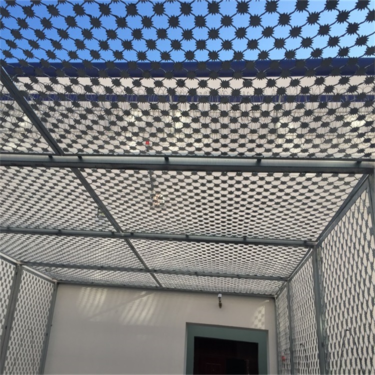 監(jiān)獄鋼網(wǎng)墻刀刃刺具有阻垢、防堵、翻轉(zhuǎn)等作用.材料堅(jiān)硬、強(qiáng)度高、張力高,設(shè)計(jì)獨(dú)特不適合接觸,具有良好的保護(hù)和隔離效果.監(jiān)獄圍墻網(wǎng)絡(luò)也具有結(jié)構(gòu)簡單、經(jīng)濟(jì)實(shí)用的優(yōu)點(diǎn).材料: 監(jiān)獄網(wǎng)墻用低碳鋼線和鋁合金線.