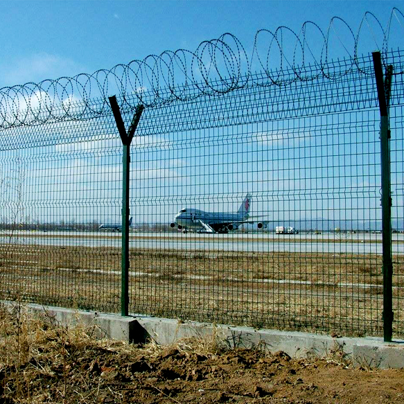 經(jīng)常坐飛機(jī)的朋友,應(yīng)該會注意過在機(jī)場外圍一圈綠色金屬絲編織或焊接的圍網(wǎng),這就是我們經(jīng)常說的機(jī)場圍界網(wǎng),而我要給大家介紹的是一種我們公司近兩年研制的新型機(jī)場圍界產(chǎn)品 -- 鋁包鋼機(jī)場圍界