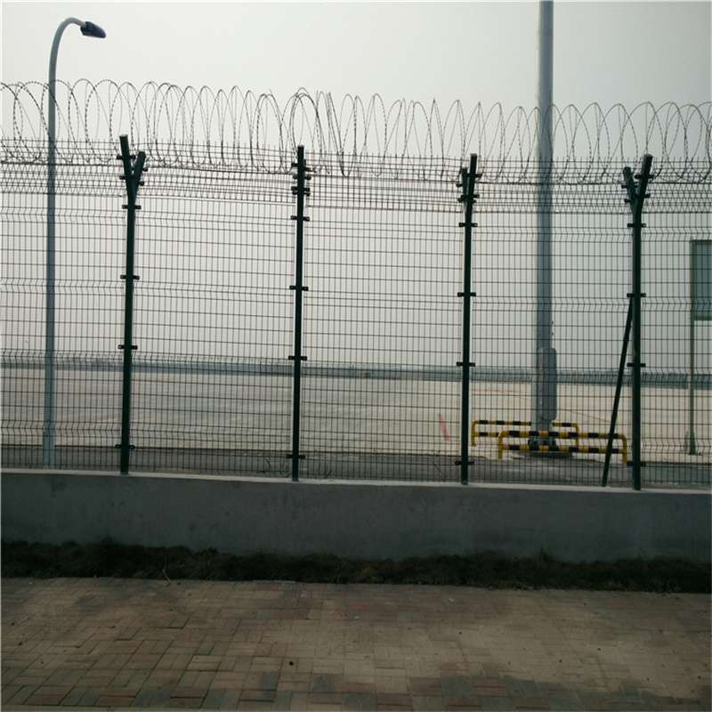 機場護欄網(wǎng)又稱作Y型安詳防止護網(wǎng),鐵路護欄網(wǎng),是由V型支架立柱增強型焊接片網(wǎng),安詳防盜毗連件和熱鍍鋅刀片刺網(wǎng)構(gòu)成強度和安詳防