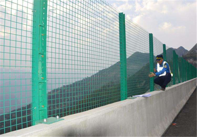 橋梁防落網(wǎng)適用于采用混凝土護(hù)欄的上跨橋,防落物網(wǎng)設(shè)置間距為2m,膨脹螺栓應(yīng)注意對(duì)螺栓外露部分妥善保護(hù),防落網(wǎng)立柱與連接板,