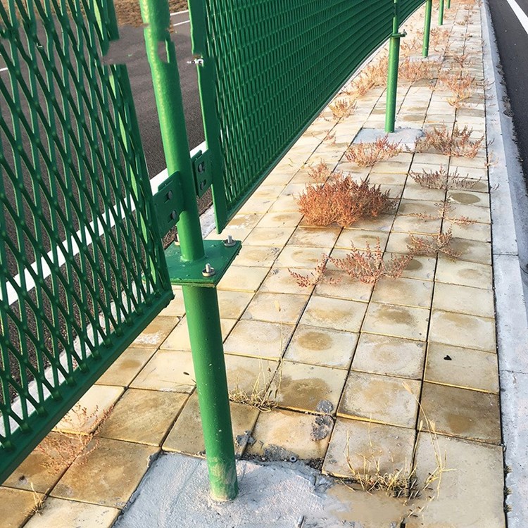 高速公路隔離柵采用鋼板網(wǎng)為主體,附以邊框以加強(qiáng)其整體性能并便于安裝,達(dá)到快速組裝的安裝目的。用的這個(gè)鋼板網(wǎng)就是防炫目網(wǎng),也就是平時(shí)說(shuō)的防拋網(wǎng)、金屬板網(wǎng)、鋼板拉伸網(wǎng)、金屬擴(kuò)張網(wǎng)、鐵板網(wǎng)等。它的制作過(guò)程簡(jiǎn)單的來(lái)說(shuō)是金屬板經(jīng)由沖剪機(jī)裁剪沖壓,形成網(wǎng)狀的張料物體,由于這種鋼板網(wǎng)的獨(dú)特構(gòu)造,能夠改變光線直射過(guò)來(lái)的方向,使車輛和燈光一部分被阻擋,一部分被改變方向,只有少數(shù)部分被傳遞到人的眼睛里,起到了防止眼睛眼暈的作用。這樣既可以隔離上下行車道,又能有效的保障防眩設(shè)施的連續(xù)性和橫向通視,達(dá)到防眩、隔離雙重目的,是一種非常合理的高速公路護(hù)欄網(wǎng)產(chǎn)品。