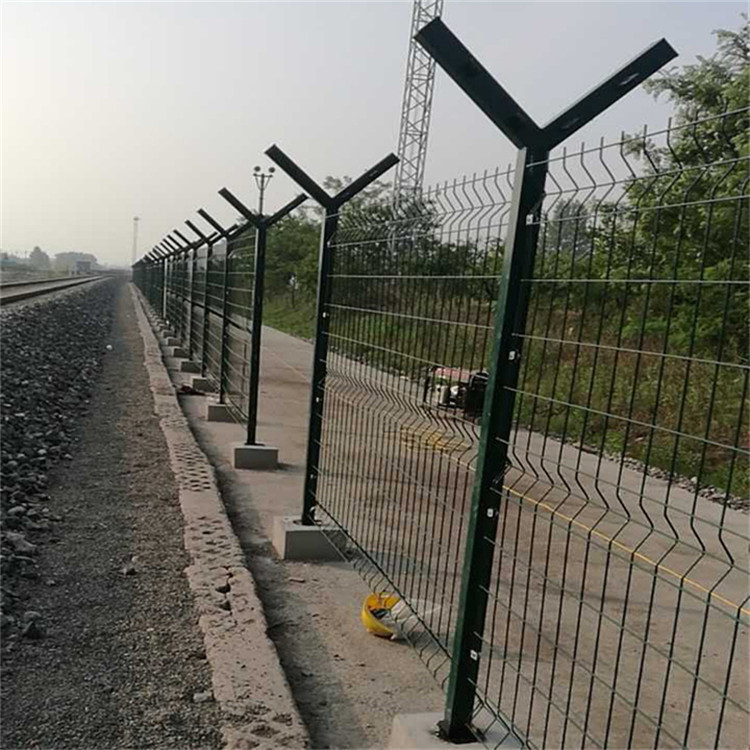 機(jī)場(chǎng)護(hù)欄網(wǎng)又叫機(jī)場(chǎng)隔離網(wǎng) 機(jī)場(chǎng)圍界 鋼絲網(wǎng) Y型柱防御網(wǎng),主要用于機(jī)場(chǎng)外圍的隔離防護(hù)以及機(jī)場(chǎng)跑道的防護(hù),材質(zhì)為低碳鋼絲,表面處理為鍍鋅加浸塑 高度主要有2.0m2.5m3m 也可根據(jù)客戶主要來(lái)定做,網(wǎng)孔為50*100 50*150 50*200 可定制 絲徑主要是4毫米到5毫米,公司有多年加工經(jīng)驗(yàn),歡迎您來(lái)咨詢!安平縣艾瑞金屬絲網(wǎng)有限公司。