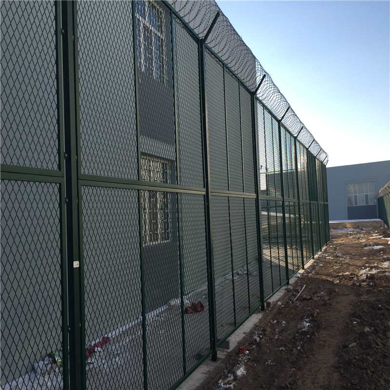監(jiān)獄隔離網(wǎng)具有美觀、實用、方便運(yùn)輸和安裝的特點,可以隨時根據(jù)現(xiàn)場地形做上下起伏相應(yīng)調(diào)整,四周焊接邊框使強(qiáng)度和美感顯著增加,所以近年來,被廣泛應(yīng)用在監(jiān)獄,軍事基地等高安全場所。(注:如果在監(jiān)獄護(hù)欄網(wǎng)頂部加裝刀片刺絲、刀片刺繩后又很好的增強(qiáng)了安全防護(hù)性能。)