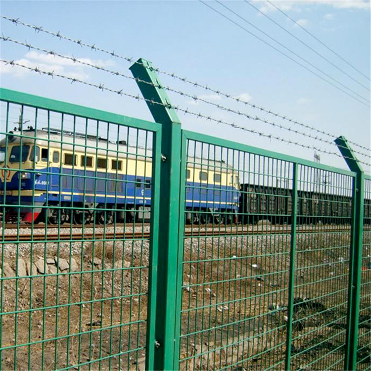 高速鐵路防護(hù)柵欄類型區(qū)分與作用說明:雙邊絲護(hù)欄,直框護(hù)欄,頂部30°折彎的護(hù)欄。一般鐵路線路兩側(cè)為了阻止落石或者阻擋外界的任何動物的時(shí)候會選擇雙邊絲護(hù)欄網(wǎng)作為隔離網(wǎng)。鐵路鐵軌兩側(cè)會使用直框護(hù)欄或者加折彎的護(hù)欄作為防護(hù)網(wǎng)。但是作為鐵路防護(hù)柵欄的護(hù)欄邊框不能使用普通的20*30的小邊框,而是采購30*40的方管邊框作為護(hù)欄網(wǎng)的邊框與低碳鋼絲焊接?;蛘呤且凿摪寰W(wǎng)作為網(wǎng)片,四周焊接角鐵,也被稱為框架型的鐵路防護(hù)柵欄。安裝尺寸:1.8米*3米,柱中到柱中,鐵路線路上常采用水泥立柱與網(wǎng)片連接。邊框:30*40mm,或者40*40的角鐵。表面處理:浸塑草綠色或者浸塑墨綠色。